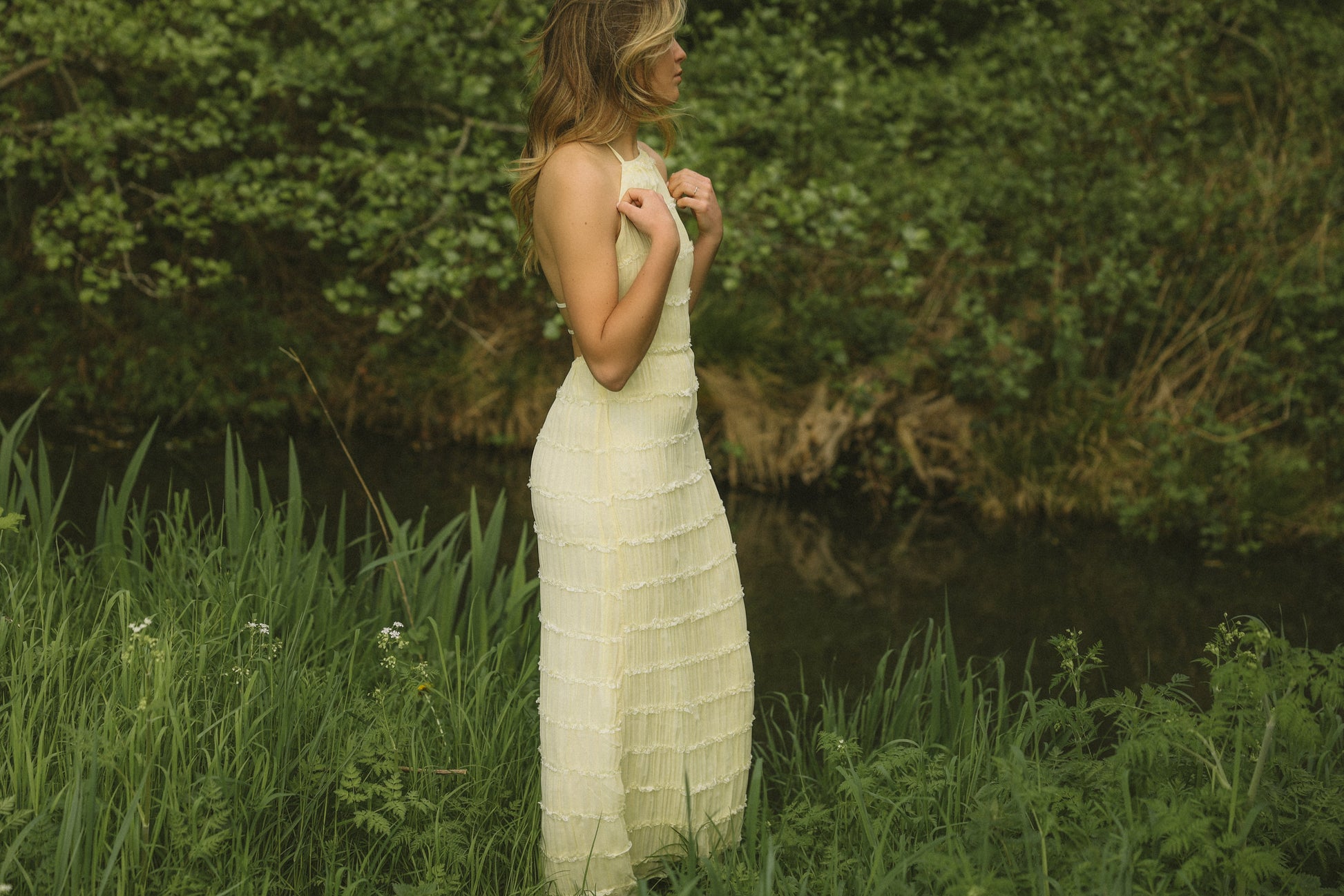 Sam mide 1,75 m y normalmente lleva la talla S/M. En este vestido lleva la talla M.